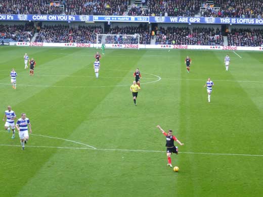 The big news in Harry Redknapp’s team selection was the rare adoption of the 4-4-2 formation. In the absence of Joey Barton through injury Andy Johnson started up front with Charlie Austin, who is rapidly and rightfully gaining a talismanic status amongst the QPR faithful. The midfield almost took on a diamond shape. There was an equally rare home start for Karl Henry in front of the back two of Richard Dunne and Clint Hill. Niko Kranjcar played in and advanced position whilst Tom Carroll occupied the left position and Gary O’Neil the right. There was a welcome return to the subs bench for Malian misfit Samba Diakite