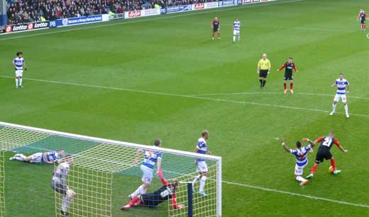 There were a few bright spots in a disappointing first 45. QPR’s best chance of the half came on 33 minutes when Austin’s header was denied by the post. In the ensuing goalmouth scramble Alex Smithies saved from Clint Hill after which Henry’s header hit the crossbar.