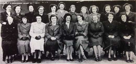 (Pictured above are, left to right – back row: Mrs B Elkins, Mrs I Durrant, Mrs Pearce, Miss C O’Connell, Miss McKenzie, Mrs Jones, Mrs Boyle, Miss J Lovett, Miss D Gurrin, Miss E Morris, Miss R Goodchild, Mrs E Reeves.