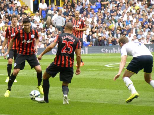 But confidence and energy seems to drain away from QPR. On the halfway mark of the half Rio Ferdinand made a late challenge on Lamela 25 yards out. Christian Eriksen nearly scored with a thunderous free kick which hit the bar. Surely the vanishing spray will make this type of opportunity more profitable thought the Premier League this season.