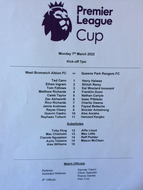 Reyes Cleary gave West Brom the lead three minutes beforethe break when he bent the ball beyond the reach of the R’s keeper. Half-time: 1-2.